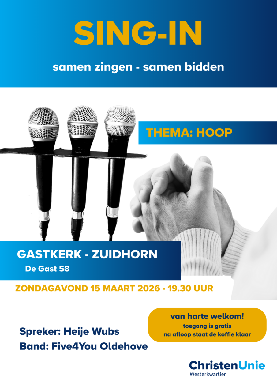 Samen met alle christenen in Westerkwartier de laatste zondag voor de verkiezingen zingen, bidden en overdenken.