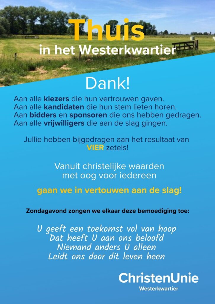 “Verschillen tussen partijen in het Westerkwartier zijn er op dat vlak ook: van alle partijen die meer dan vijf moties hebben ingediend, kreeg de ChristenUnie-fractie het vaakst steun van een meerderheid. Van de vijftien moties die die partij als eerste ondertekenaar heeft ingediend, zijn er negen aangenomen of ingetrokken onder toezegging.”
